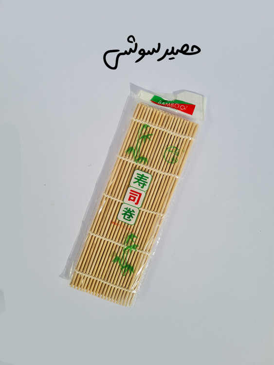 ورق جلبک + سرکه برنج + سس سویا + حصیر سوشی + برنج سوشی
