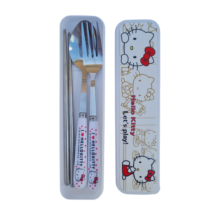 🐱ست قاشق چنگال و چاپستیک کیتی به همراه باکس
