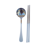 داخلش یک جفت چاپستیک و یک قاشق مخصوص نودل خوری داره به علاوه یک باکس که میتونی قاشق و چاپستیک رو داخلش بزاری و راحت هر جا میخوای با خودت ببری